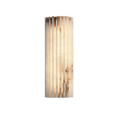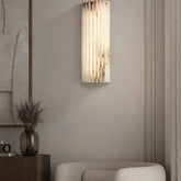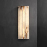 The Alvia Ribbed Alabaster Wall Lamp brings a timeless fusion of sculptural artistry and serene illumination. Its elongated rectangular silhouette is hand-carved from natural alabaster, with subtle ribbing that accentuates the stone’s organic veining and soft translucency. This wall-mounted fixture emits a warm, calming glow—ideal for bedrooms, hallways, and any space seeking minimalist refinement with rich material depth.