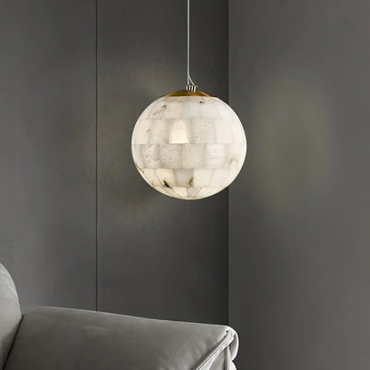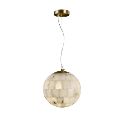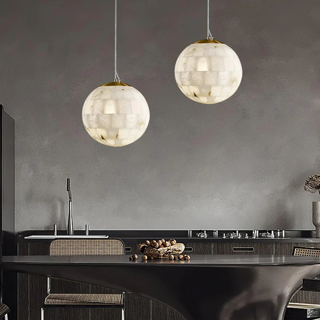Each globe is crafted from natural alabaster, featuring unique veining patterns that create a soft, organic glow. -