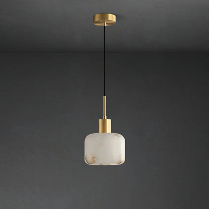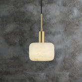 Inspired by the organic charm of an acorn and sculpted from authentic alabaster, the Velia Pendant Light radiates minimalist beauty with a warm, ambient glow. Suspended from a refined brass fixture, this pendant combines delicate natural stone with clean-lined design—perfect for Japandi, Wabi-Sabi, and modern interiors seeking refined tranquility.