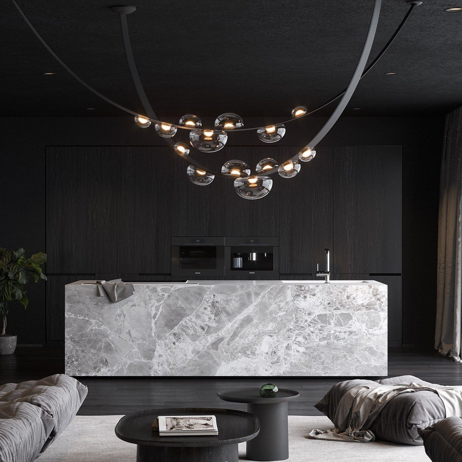 Offered in two statement-making lengths (250cm and 300cm), this chandelier is ideal for dining rooms, kitchen islands, gallery spaces, or commercial interiors.