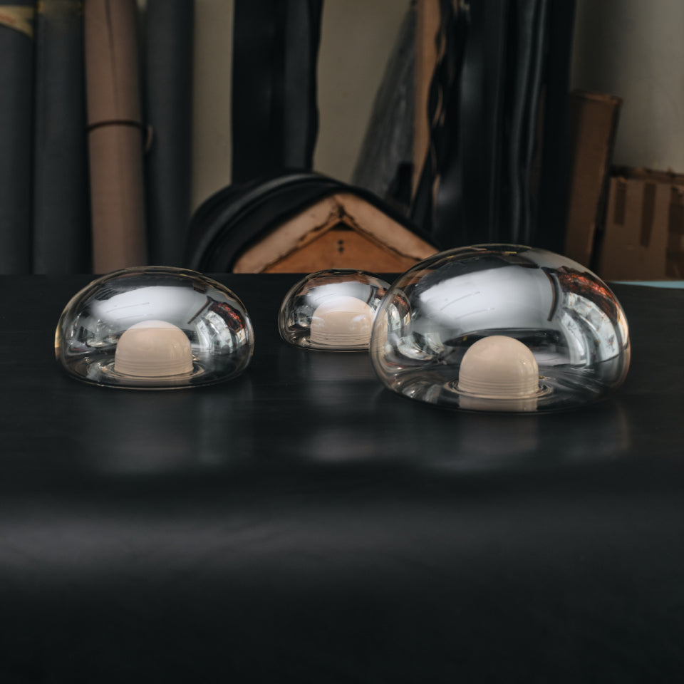 Constructed from high-grade leather and glass, finished in smoke grey and black using electroplating, cutting, and polishing methods.